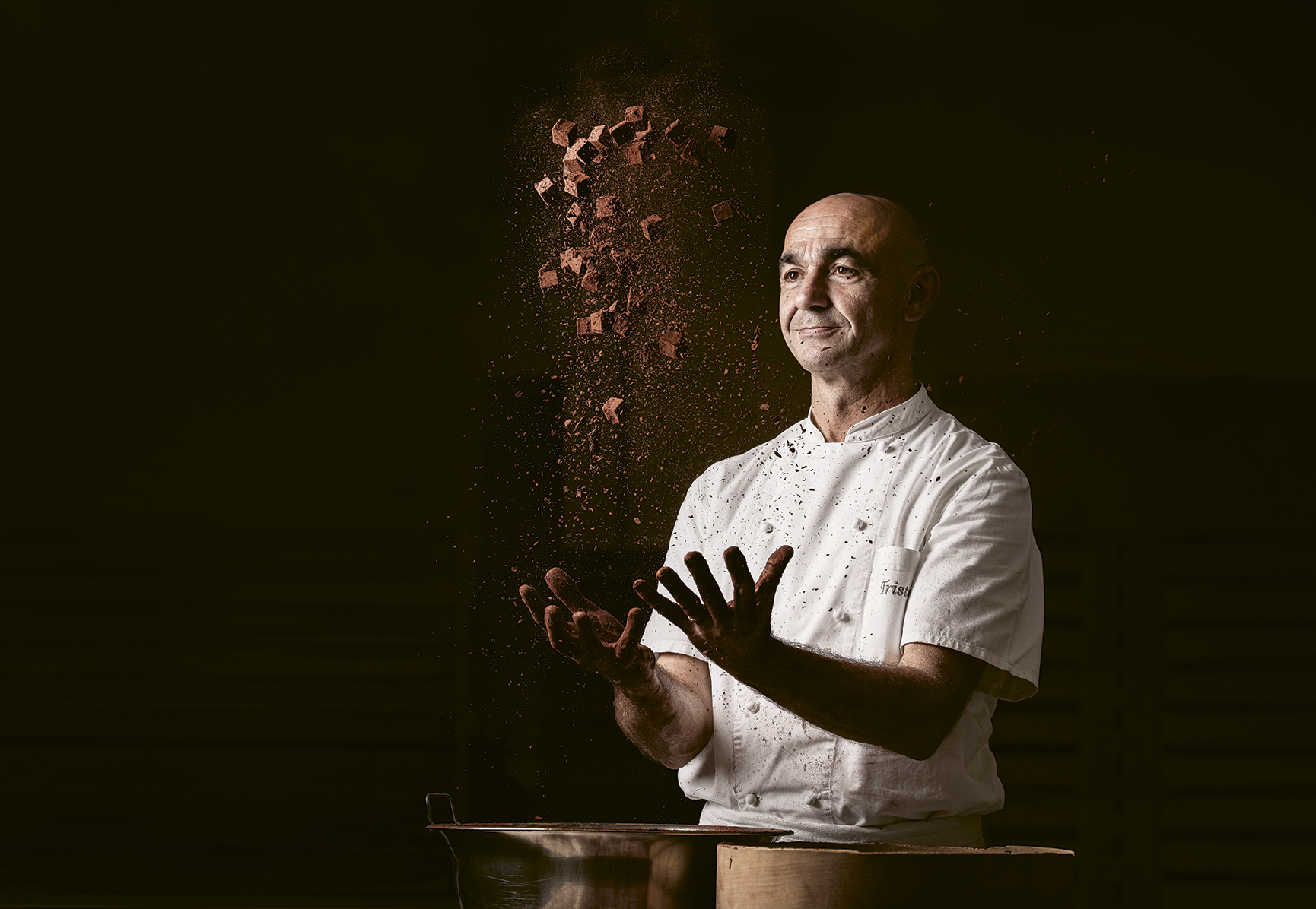 Peut-on échapper au chocolat, quand on naît à Genève et que l’on grandit sur la Riviera vaudoise ? Tristan Carbonatto n’a pas réussi. Adolescent, le jeune homme hésite à filer en cuisine ou vers le laboratoire. Ce sera sucré, finalement. À la confiserie Boccard de Rolle, il apprend « la rigueur et l’amour du travail bien fait ». Puis intègre l’équipe du légendaire Hôtel de Ville de Crissier. Tout beau, tout bon, les défis sont constants, le rythme soutenu, mais les gestes rentrent et deviennent automatismes. Frédy Girardet, le Robuchon suisse, accumule les étoiles (Michelin), les points (Gault&Millau), les médailles et les récompenses. Un sacré exemple, taillé tout en rigueur et savoir-faire.