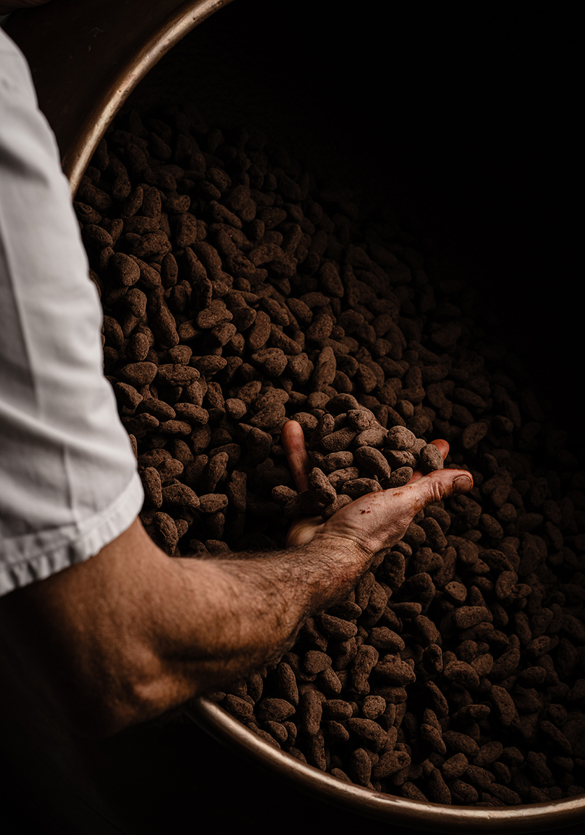 On le retrouve aujourd’hui en contrebas, dans son vaste (700 m2 !) atelier-laboratoire-boutique de Perroy. Les gourmands y affluent la truffe au vent pour faire provision de truffes au caramel, de « rêves de noisette », de pralinés, de feuillantines, de rochers aux pistaches caramélisées et noisettes. La maison propose désormais quelque 140 spécialités, toutes exemptes de conservateurs et pur beurre de cacaos. Le « s » s’impose, tant le boss aime fureter parmi les crus provenant des quatre coins de la planète chocolat. Ses favoris ? « L’Équateur et le Ghana, pour leur identité forte ». Mais si la quête des meilleurs cacaos est centrale, celle des fruits secs et condiments est aussi essentielle : noisettes du Piémont et pistaches de Sicile sélectionnées en personne sur place, yuzu et thé vert matcha du Japon, vanille de Madagascar et même… piment de Perroy (!), Tristan ne retient que le meilleur. L’occasion « de comprendre les variétés, d’apprécier la richesse des terroirs et de tisser des liens d’amitié et de confiance avec les producteurs. »