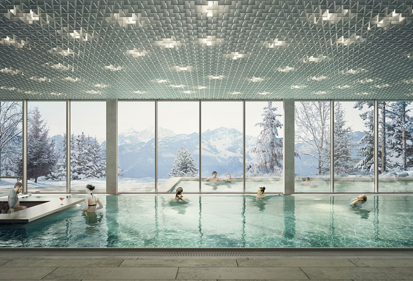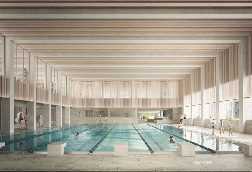 Following its partial destruction by a fire in 2017, before it was even fully built, the Verbier sports centre has been the focus of a large redevelopment project. The existing multi- sport room will soon welcome a new, three-storey “relaxation” building made of Salvan Stone, locally sourced wood and recycled concrete. It will be home to swimming and relaxation pools, a children’s space with slides and water games, a gym, spa (saunas, hammams, etc.) and a restaurant — without forgetting the outdoor summer area. It will be a welcome addition to the region’s four-season tourism development. The first stone was laid late summer 2025 and the inauguration is planned for 2028.