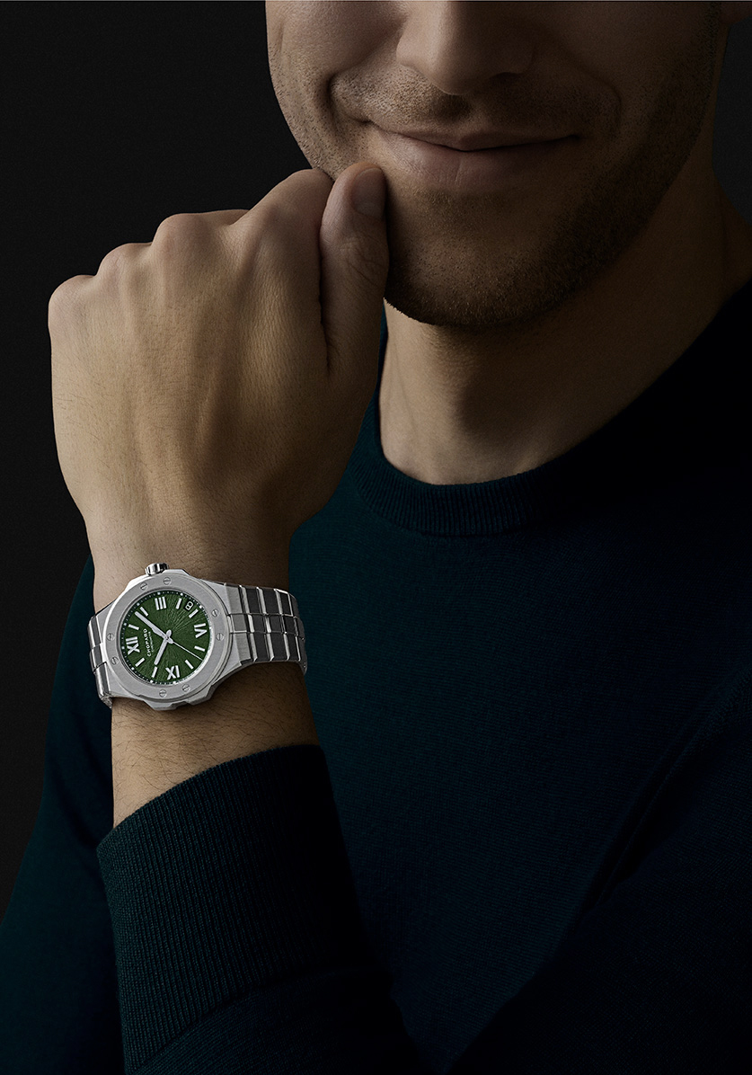 Ganz klar etwas fürs Auge! Das strukturierte Zifferblatt in galvanisiertem Piniengrün ist der Iris eines Adlers nachempfunden und setzt sowohl die römischen Ziffern als auch die rhodinierte Leuchtindizes effektvoll ins Szene. Das bewusst puristisch gehaltene, aussergewöhnliche Stück Uhrenkunst umfasst ein Edelstahlgehäuse mit 41 Millimetern Durchmesser, in dem ein COSC-zertifiziertes Manufakturkaliber mit 60 Stunden Gangreserve schlägt.