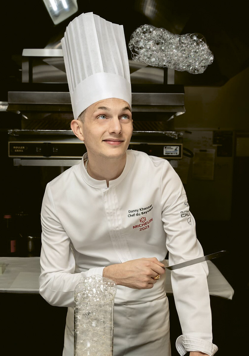 His motto? “To cook, I follow my emotions”. At the other end of the city, Danny Khezzar, of Top Chef fame, scratches his head. His dreadlocks are now a thing of the past, but he still has questions… what is he going to do for Watches and Wonders attendees in April? The young Parisian chef, who leads Bayview by Michel Roth at the Hotel President, already has two watch trade fairs under his belt. A first, “light” version in 2024 around a small stand. Then, after his roaring success, an XL gourmet table featuring a host of culinary activities, demonstrations and masterclasses that all took place around his 100 m2 kitchen that was specially built for the occasion! His “Lounge by Danny Khezzar” became a favourite meeting place for many brands. “It gave me a chance to push my creativity to the max”, said the young chef, “all while taking inspiration from watchmaking”.
