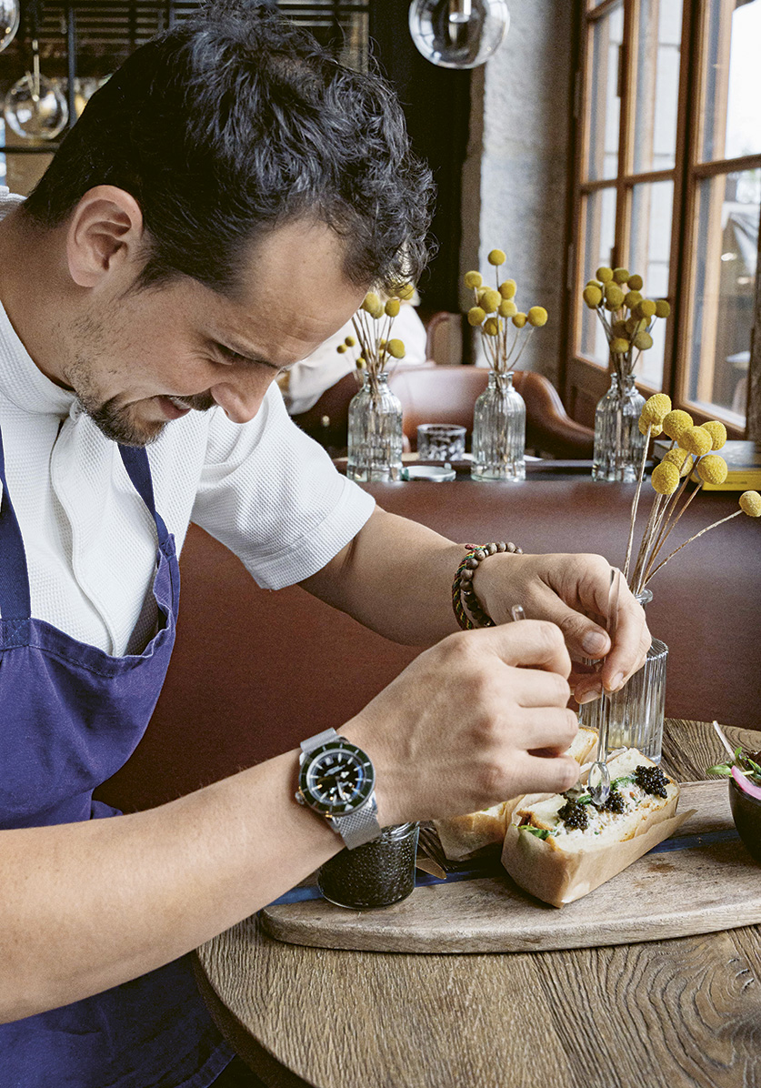 Why this space? To celebrate “the artisanal, the passion, the quality, the meticulous know-how, the special detailing and the search for excellence” that transcends both the world of watchmaking and fine dining, explains the Head of Marketing Lauranne Gfeller. “Whether one is building a plate or a watch, it all begins with a story and the promise of a memorable experience. In the same way that a chef designs his menu, a watchmaker assembles his pieces: each gesture matters, every ingredient or component has an undeniable part to play in the final result. Cooking comes down to the seconds, minutes and hours; time plays an essential role in both”.