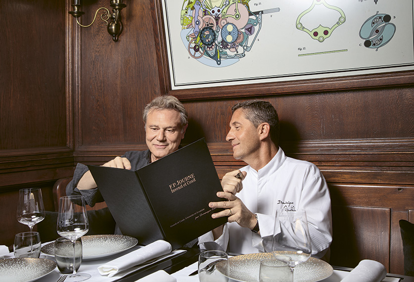 In 2022, a mutual friend introduced celebrity watchmaker François-Paul Journe to the starred chef at Chat-Botté (in Beau-Rivage), Dominique Gauthier. The first man won the Aiguille d’Or, the top prize awarded at Geneva’s Grand Prix d’Horlogerie. The second was named Chef of the Year and awarded 18/20 points by Gault&Millau. The two men immediately hit it off, setting an indisputably precise mechanism in motion. Despite their two very different careers, Journe and Gauthier quickly realised their shared a common love for art and well-crafted works. Could this shared passion and new friendship be the starting point for a new kind of dining experience?
