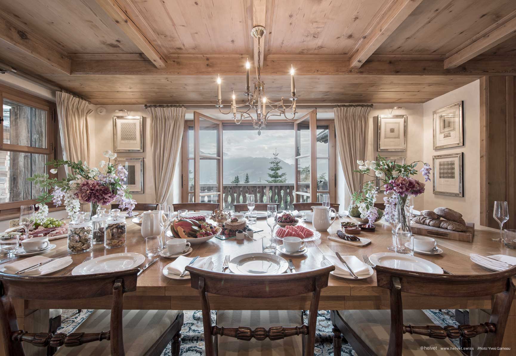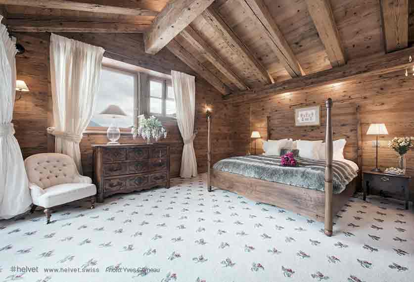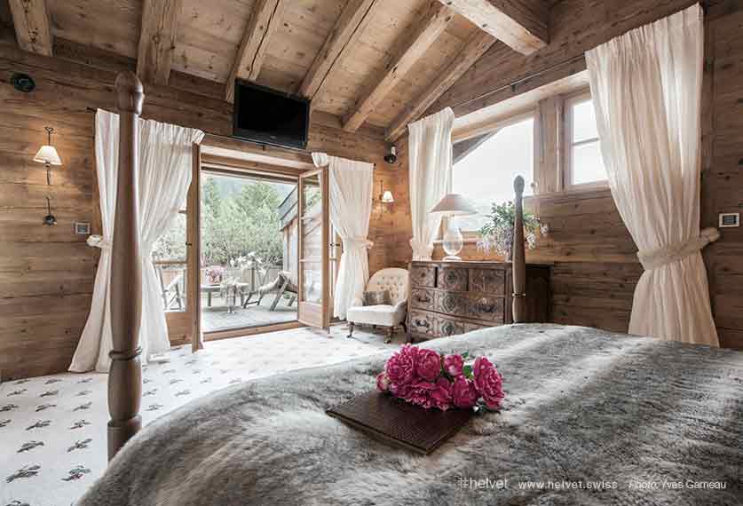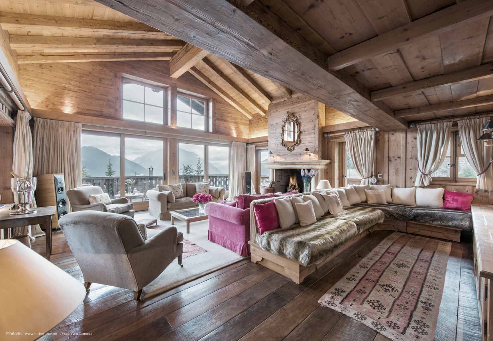 With its intricately carved Indian doors, colonnaded indoor swimming pool, miniature elephant heads adorning the entrance hall, and saffron yellow champagne buckets, it draws the eye to horizons that stretch far away from the ambience created by the use of alpine wood. Voted Switzerland’s Best Ski Chalet of 2014, this is a place that is decidedly exclusive, eclectic and off-the-wall.