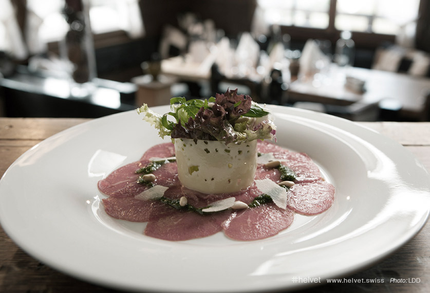 We’ve made a few changes to the menu too. We’re offering more vegetarian dishes and we’ve added a few new ones as well, including one in which foie gras takes pride of place and one with Merlot-braised Valais lamb shanks and parmesan polenta. I can assure you, though, that bestsellers, such as the Vrony burger and our dried meat, still have a very prominent place on the menu. We also have a specialities menu, which changes every two weeks and which includes our tartare, for example. As for the rest, we’ve stayed loyal to our philosophy of cooking traditional recipes that have been handed down from generation to generation, while reworking regional dishes with an international influence, all using local, organic produce. In short, its cuisine that’s simple and traditional and yet gourmet all the same.