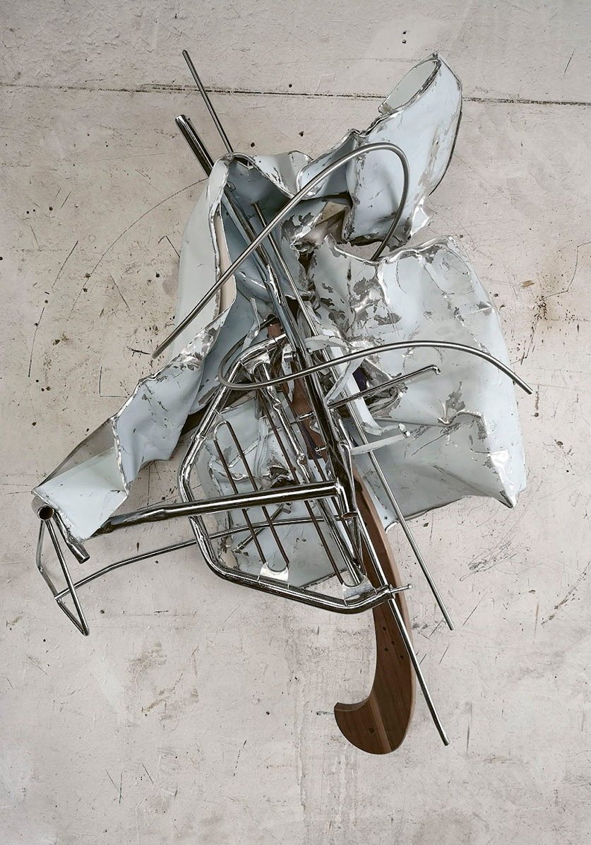 More recently, Heinz Julen collected and upcycled other people’s litter by transforming it at random. Then a chance encounter with (the very well known) contemporary artist Peter Doig inspired him to begin painting again… this time, however, in his own way. His large-scale paintings represent the mountains and glaciers, or his studio in Findeln, but are meant for metamorphosis. The crumpled paper is later reclaimed and reworked into three dimensions. The action takes precedence over the object, an attempt to define the most important thing of all: “the mystery of life.” His latest creations will be on display at Kunsträume, at the Backstage Hotel, beginning mid-February 2024.
