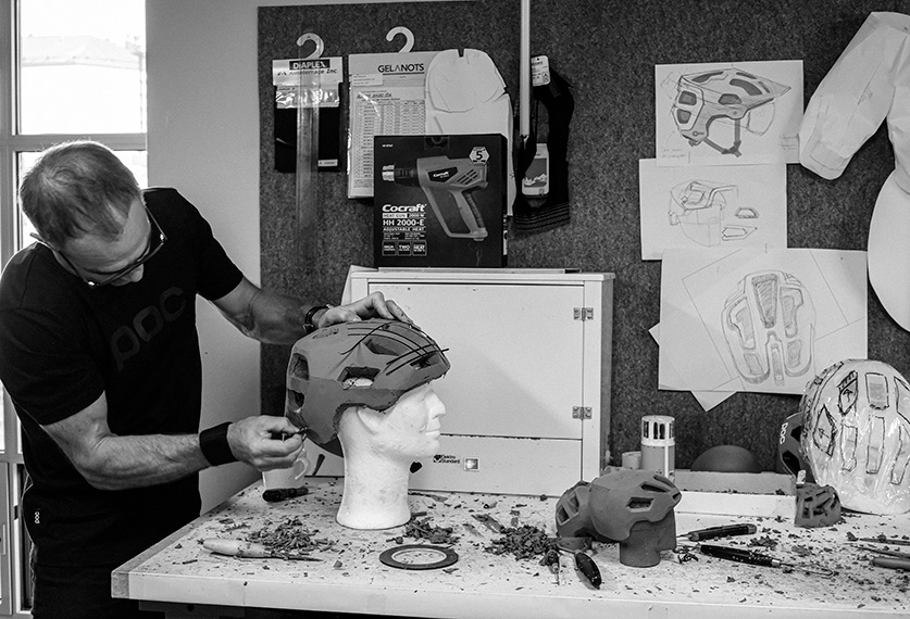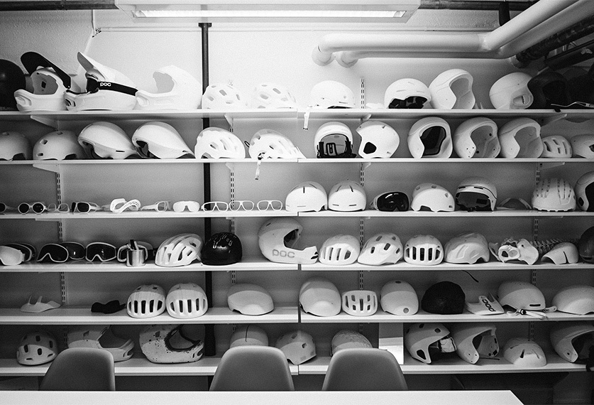 Ytterborn teamed up with Jan Woxing, now the brand’s creative director, and a finance-savvy friend. Together they launched Poc Lab, working with neurologists and medical specialists to analyze every possible crash scenario. Out of this came a precise blueprint for what makes a truly exceptional helmet. “Within that framework, our challenge is always to bring maximum comfort, aerodynamics and aesthetics. It’s a balancing act we approach with humility and innovation,” explains Oscar Huss, Poc’s head of product.