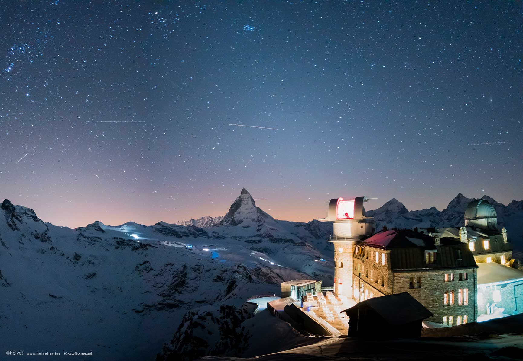 place. All the circling horizon was piled high with a mighty tumult of snowy crests… Among other noticeable things, there is a dazzling, intense whiteness about the distant Alpine snow, when the sun is on it, which one recognizes as peculiar, and not familiar to the eye… Authorities agree that there is no such tremendous “layout” of snowy Alpine magnitude, grandeur, and sublimity to be seen from any other accessible point as the tourist may see.” All sense of proportion vanishes in this fairytale landscape and the imagination flits from one peak to another. To make the most of it all and let the dream last a little bit longer, why not check in at the nearby 3100 Kulmhotel Gornergrat, the highest hotel in Switzerland?