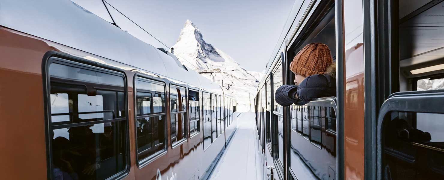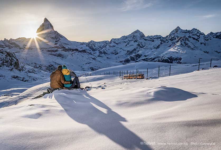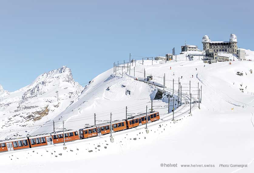 Run by Gornergrat Bahn SA (GGB) and linking up with the Glacier Express, the line begins at the Matterhorn Gotthard Bahn in Zermatt. Every day, its diminutive locomotives tackle the vast landscapes of the Alps at speeds ranging between 20 and 30 km/h. The higher they climb, the further their passengers are taken back in time, right back to 1898, the year the railway began operating. Switzerland’s first electric cog railway and a witness to the history of the pioneers of mountain rail, the Gornergrat Bahn owes its existence to the 2,400 or so workers who took just two years to carve out the route through the Alps. To begin with, the railway operated in the summer months only, but by 1928/29 a winter service was running as far as Riffelalp.