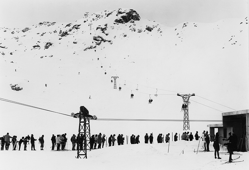 Was it a crazy idea or a way to secure the future? No one could say, but two days before Christmas, in 1950, the Médran “chairlift” opened and it was revolutionary: Switzerland’s first detachable monocable device — which soon spread throughout the country. It was a strange machine, with its openwork metallic booth, but it was a first step, soon followed by others: a drag lift at Tête des Ruinettes (1952), a single-seater lift (1955) and a drag lift (1956) in Savoleyres, Red, Blue and Green drag lifts financed by the Verbier Ski School in 1957, and, the same year, the inauguration of the Attelas cable car. In the years that followed, the Vaux basin and the Médran valley were also equipped with lifts.