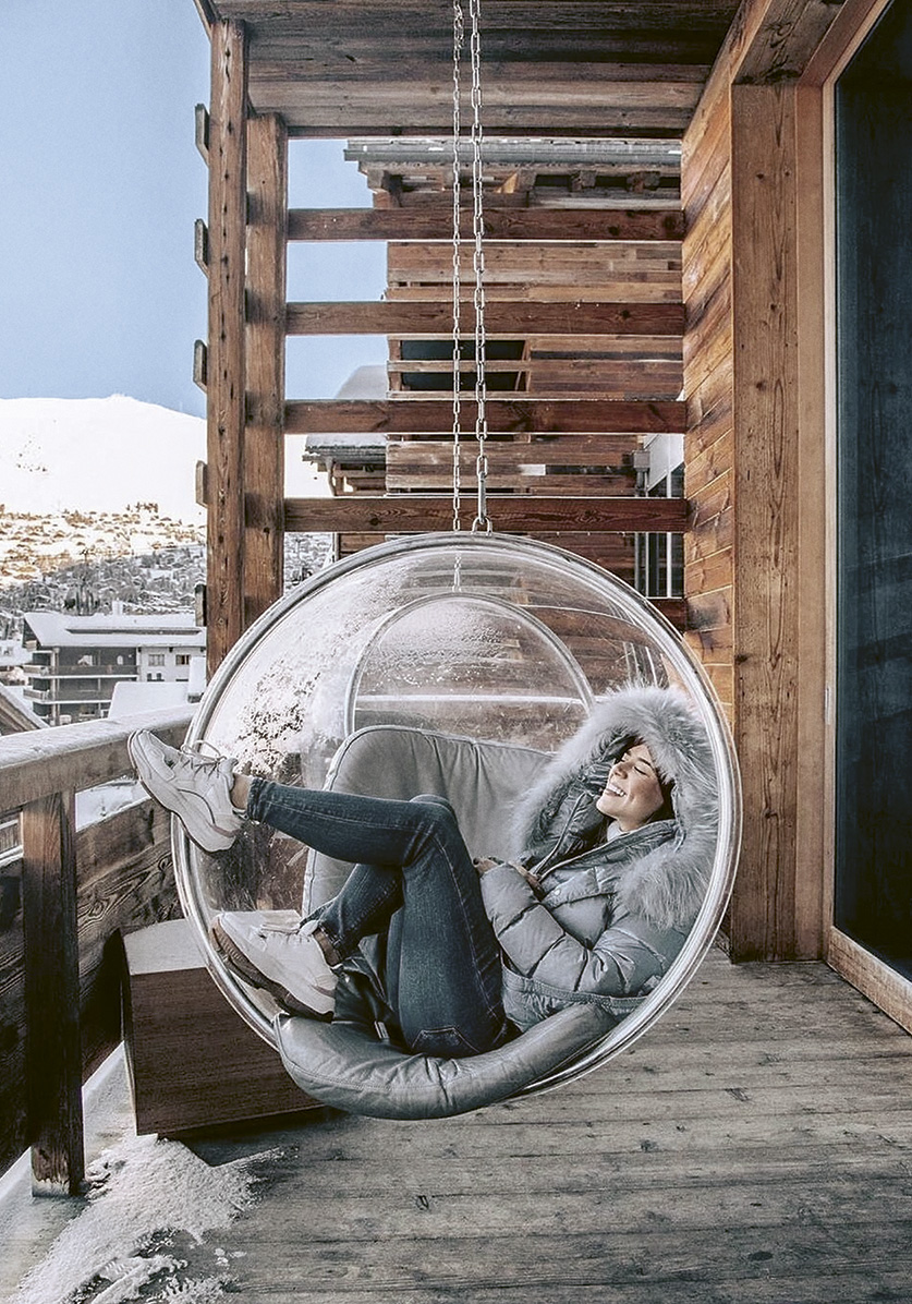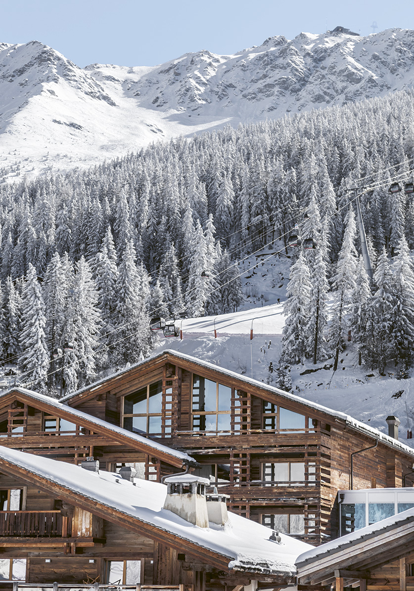 Its patina wood exterior is visually in harmony with nature, yet once inside, another universe emerges that exudes glamourous, big-city energy, pulsating in sounds, colours, spirit and desires. The W is not a hotel for the timid. Before even reaching your room, there may likely be a detour via the Living Room for an expertly mixed St. Bernard (cognac, sherry, Bénédictine, Angostura) or a Heidi (Pisco, Campari, génépi, sherry, lemon, milk). Beyond the drinks, a new Asian-Alpine fusion menu awaits to brighten your winter as you dine near the fireplace. After-ski, after-work, after-dinner, any occasion is a good one to stop in… or lounge on the terrace of Off Piste, lit up by DJs on the weekend. This year, the Amundsen brand collaboration brings Norwegian “rugged luxury” to the party, with fresh waffles paired with mulled wine or hot chocolate.