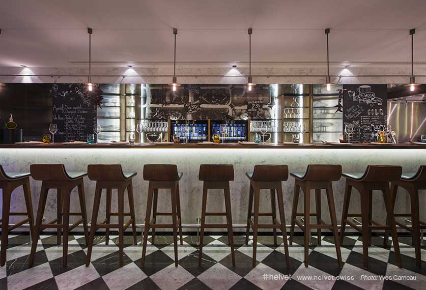 The largest hotel in the resort, the 5-star W has much more to offer however, not least at the Kitchen, a restaurant that reinvents Swiss cuisine and where an illuminated bottle wall forms part of the décor along with clusters of copper-accented lights. Alternatively, there is the Eat-Hola tapas bar run by Catalan non-conformist Sergi Arola, a would-be rock musician turned two Michelin star chef, or the bunker-style Carve Sushi Bar, with interiors as black as ink. As if that were not enough, the W also has 800 square metres of spa, complete with sauna, hammam and indoor/outdoor swimming pool; plexiglass bubble chairs for sipping cocktails on and admiring the scenery; and ever-essential après-ski at the Off Piste bar.