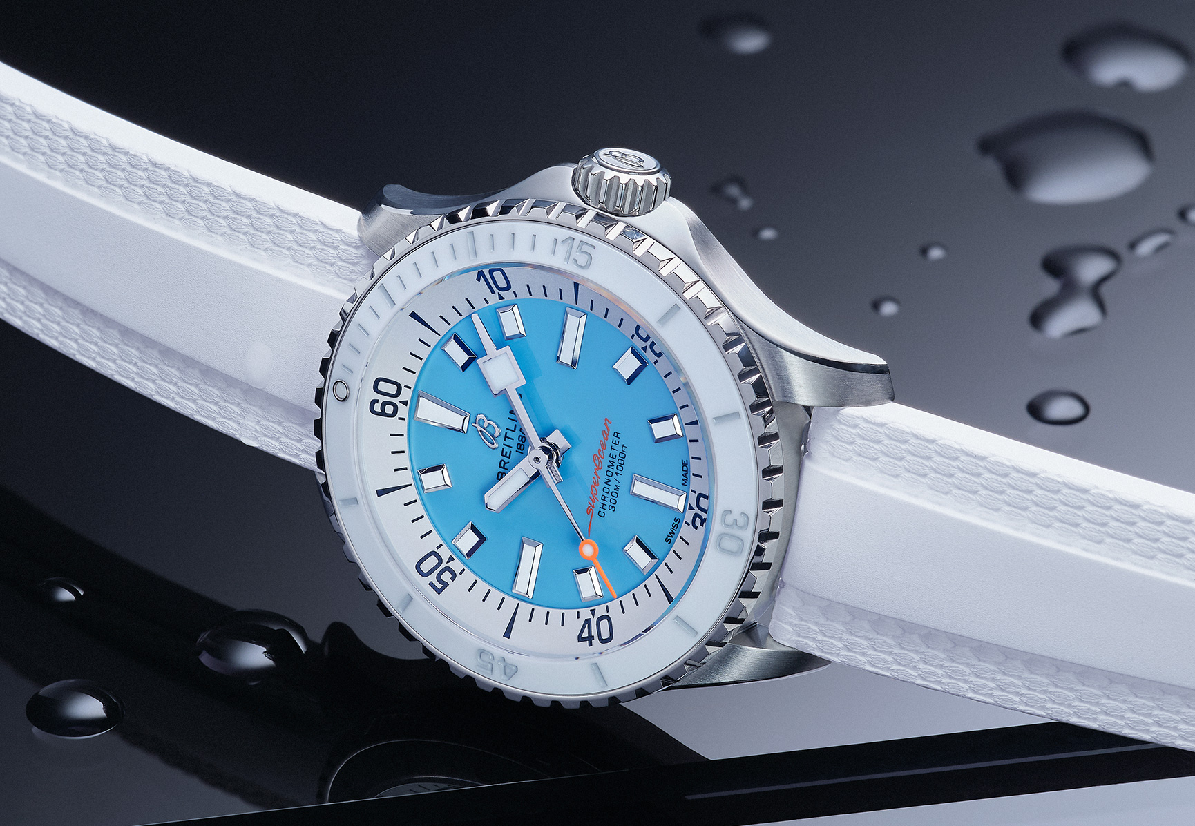 With its clean-lined, pared-down look, Breitling’s Superocean Collection appeals not only to watch enthusiasts and collectors. Since its relaunch in summer 2022, the fresh new colours and updated technical functions of this popular collection have helped transform these diver’s watches into ideal everyday timepieces. Despite the new look and features, Breitling has been sure to retain the striking style of the original Superocean Slow Motion from the 1960s and 70s. In an exclusive partnership, Breitling and Bucherer have joined forces to create three limited-edition Superocean Collection models, all featuring unique colours and exquisite materials that cannot fail to impress. Available exclusively at Bucherer, these three stylish models are also a fitting tribute to the partnership between the two Swiss companies that was successfully initiated this year.