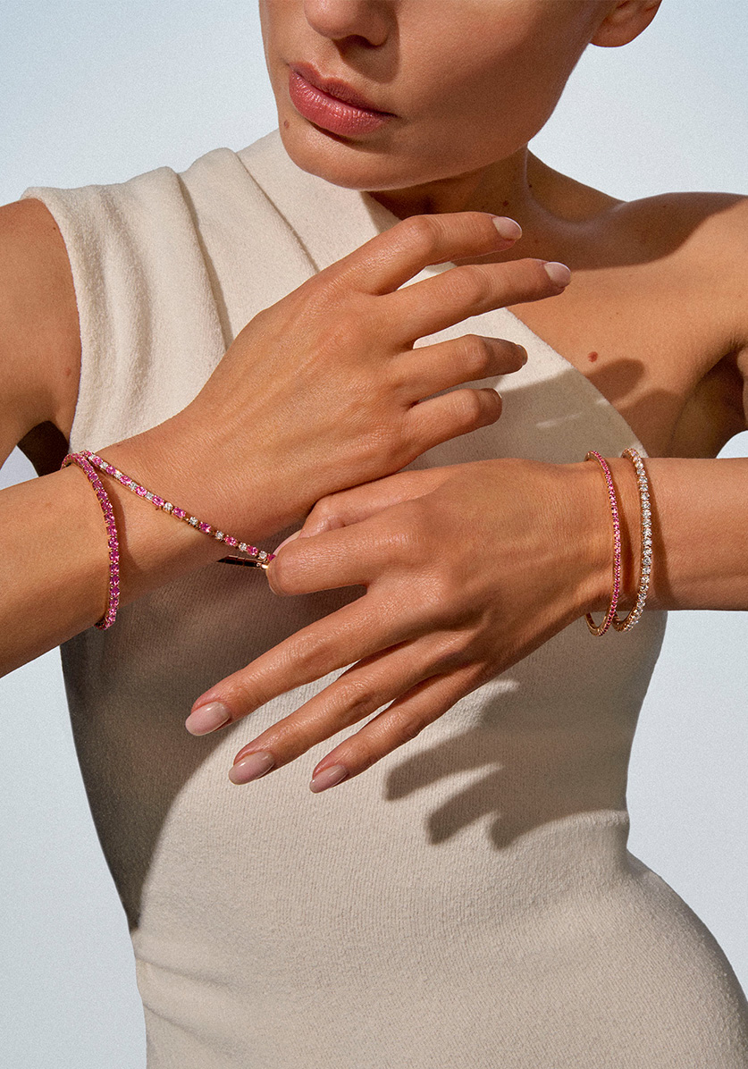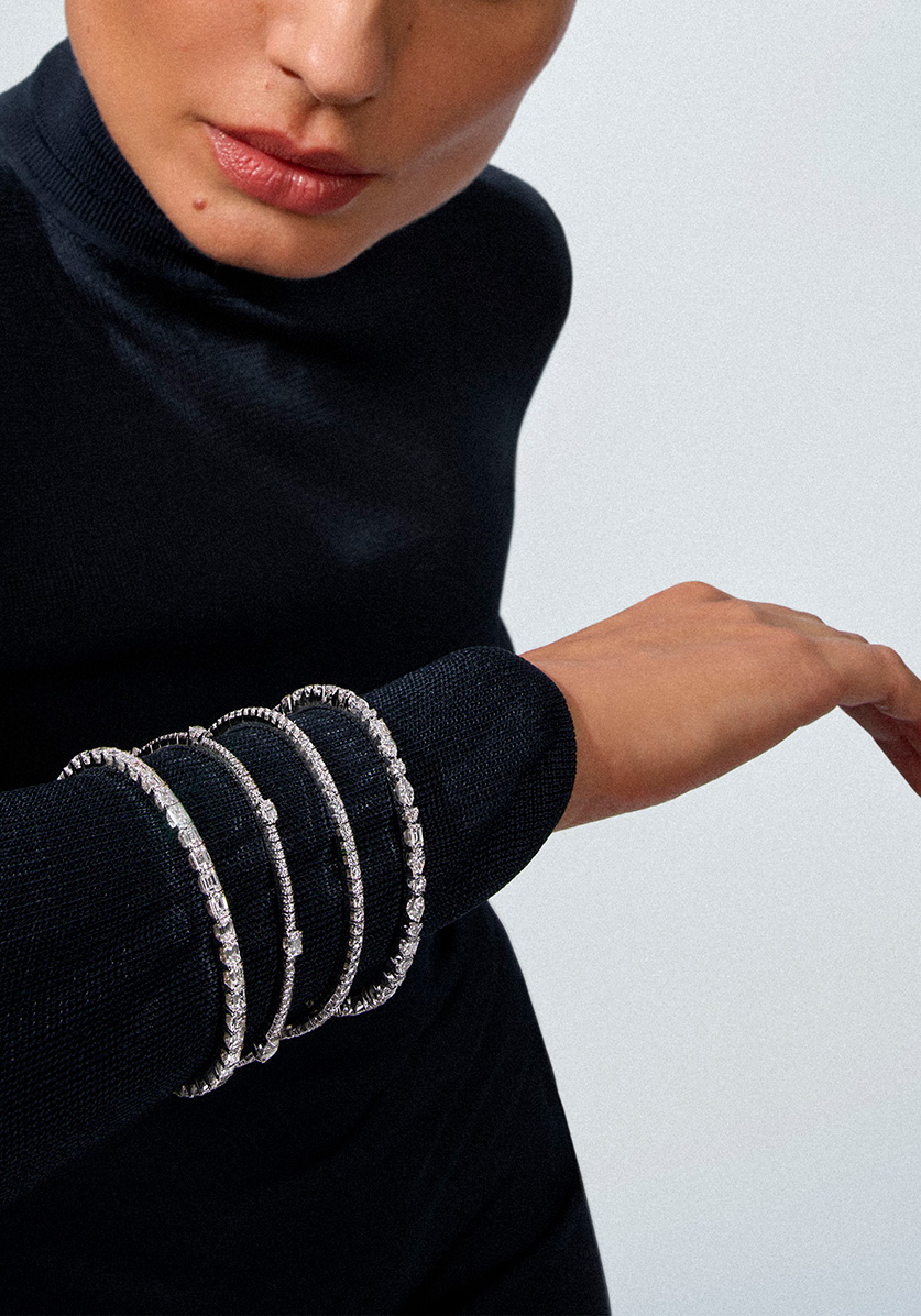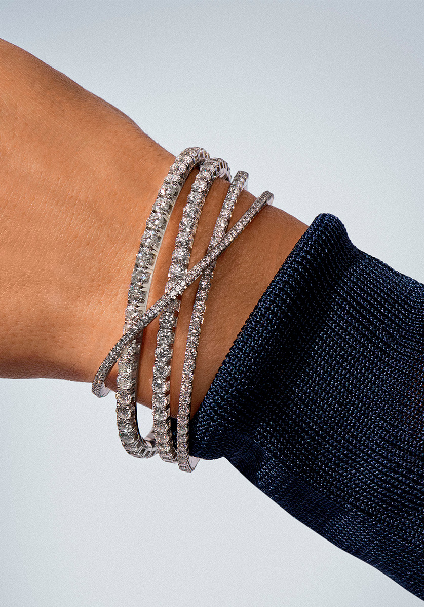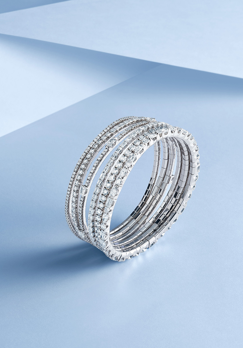With a Stretchy from Bucherer Fine Jewellery, this would never have happened. It doesn’t have a clasp, nor does it have a beginning or an end. This allows for an absolutely flawless design that puts high-carat stones front and centre. Furthermore, the well-thought-out design allows the bracelet to be easily put on with just one hand. For this reason, it is practically impossible to lose this exclusive bracelet. This makes the stretchy bracelets perfect companions for any situation in life, especially on warm days and while travelling – whether you’re playing sports, lounging by the pool, sightseeing, or enjoying an aperitif before dinner.