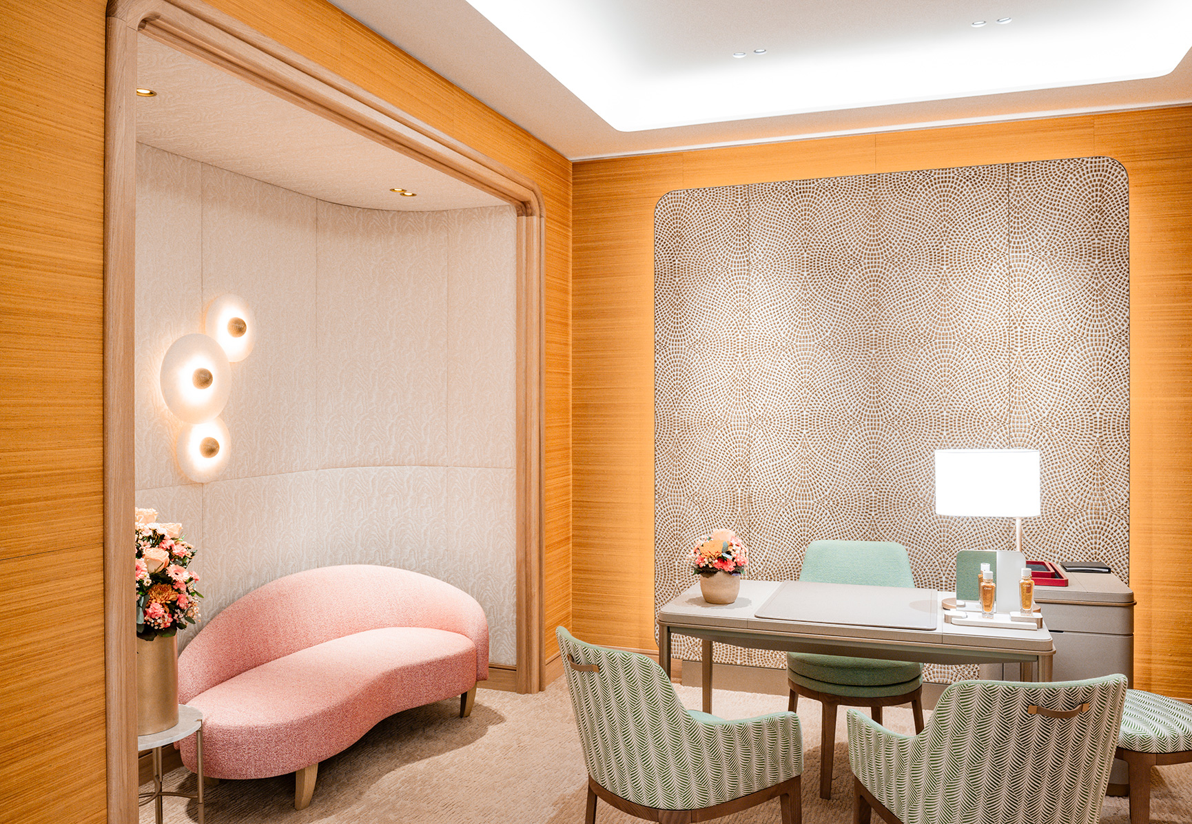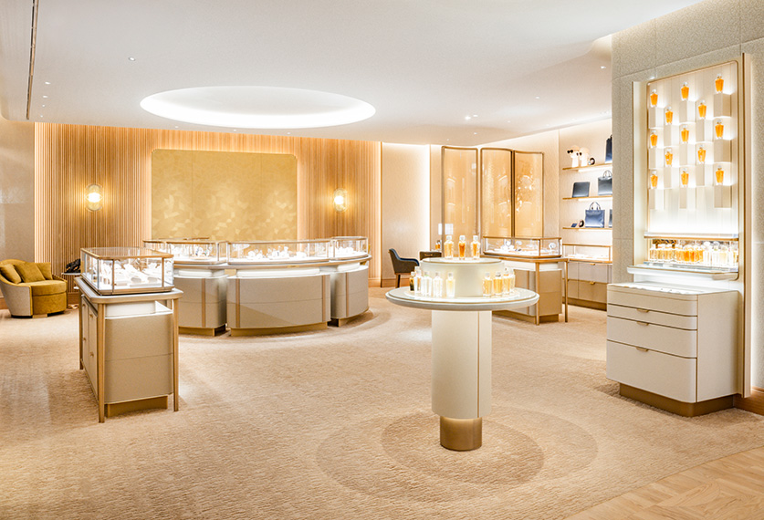 Re-imagining the boutique experience for travelers, the Cartier boutique presents an airport concept designed to blend the Maison’s timeless elegance with the city’s unique cultural and natural heritage. Its champagne gold façade offers an inviting preview of sophistication within, while the interior, inspired by Zurich’s distinctive four-season climate, transitions through soft spring tones at the entrance, vibrant summer accents in the VIP salon, warm autumn hues in the men’s area, and champagne-gold details that evoke the festive lights of winter. A highlight of the boutique is the focus wall, which celebrates Zurich’s architectural heritage with a design that incorporates the Maison’s emblematic panther motif. Airport clients may discover a curated collection of signature jewelry, timepieces, fragrances and leather goods.