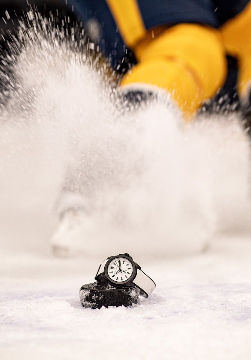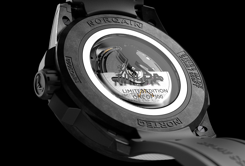 The Wild ONE and its next-gen material is the result of two years of close collaboration between NORQAIN’s team, Jean-Claude Biver, BIWI SA and the best-of-the-best Swiss suppliers. The lightweight and shock-resistant timepiece reflects NORQAIN’s DNA as a brand that produces top-quality mechanical timepieces for watch fans who lead an active lifestyle. This special case can withstand shocks of up to 5000 g, making it suitable for when the wearer rides a mountain bike, skis an exhilarating downhill slope or enjoys a strong shooting practice on the ice. Additionally, the revolutionary material is anti-magnetic and will not corrode over time.