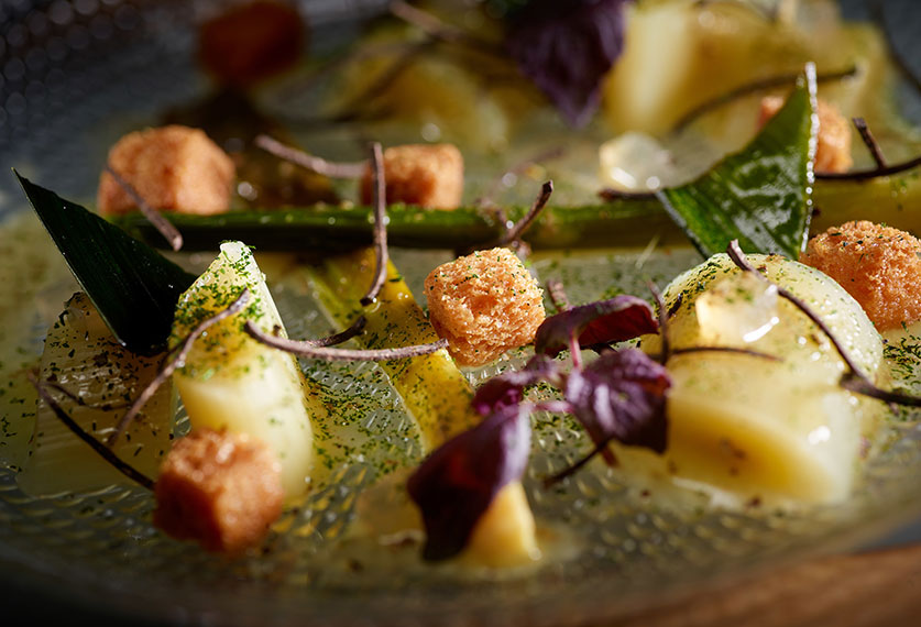 At the helm: the starred Chef Franck Reynaud, from l’Ours. In the kitchen: the young Italian Chef Gioele Marzola. The place: Le Partage, crown jewel of the Aïda Hôtel & Spa, with its impressive seasonal menu influenced by transalpine cusine. Gault&Millau has already given the establishment a solid ranking in their guide, with a score of 14/20! And in honour of the restaurant’s name, the evenings boast a Grand Partage menu, with 16 small plates designed to be shared in the spirit of conviviality.