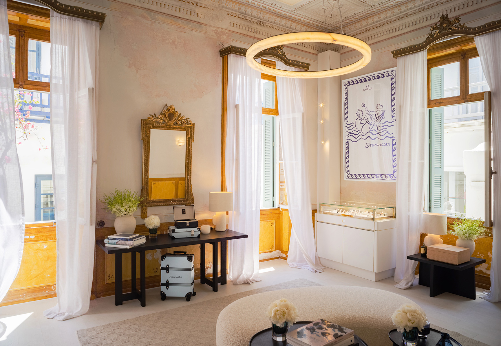 Positioned on one of the most chic islands in the Aegean, the Mykonos boutique can be found at 36 M. Andronikou Street. The store was officially opened during OMEGA’s 75th Seamaster Anniversary celebrations on June 27th, attended by media and celebrities. Outside the dedicated Seamaster room is a separate space which is adorned in pure white Mykonos style, creating a refreshed atmosphere in which to shop. In every detail, it’s a pop-up that beautifully blends with its authentic Greek surroundings.