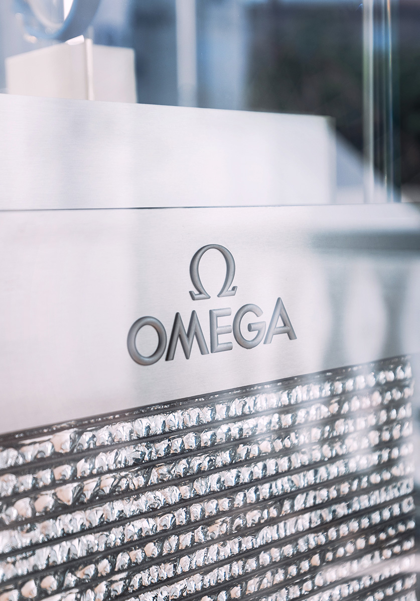 Inside the boutiques, OMEGA has brought the essence of the ocean to life, with hammered steel walls that symbolise the mirrored ripples of water, along with a trident-bearing Poseidon statue, made with alabaster-inspired materials to celebrate the 75-year milestone.