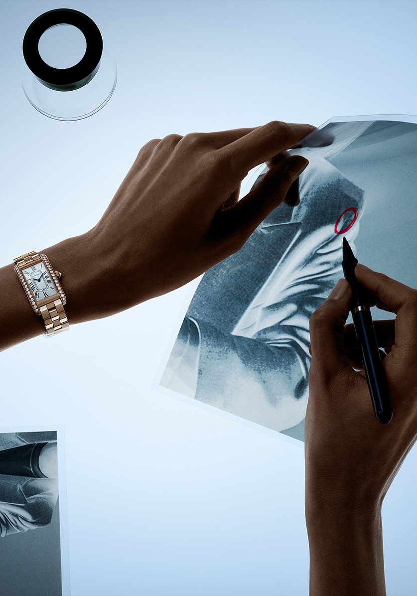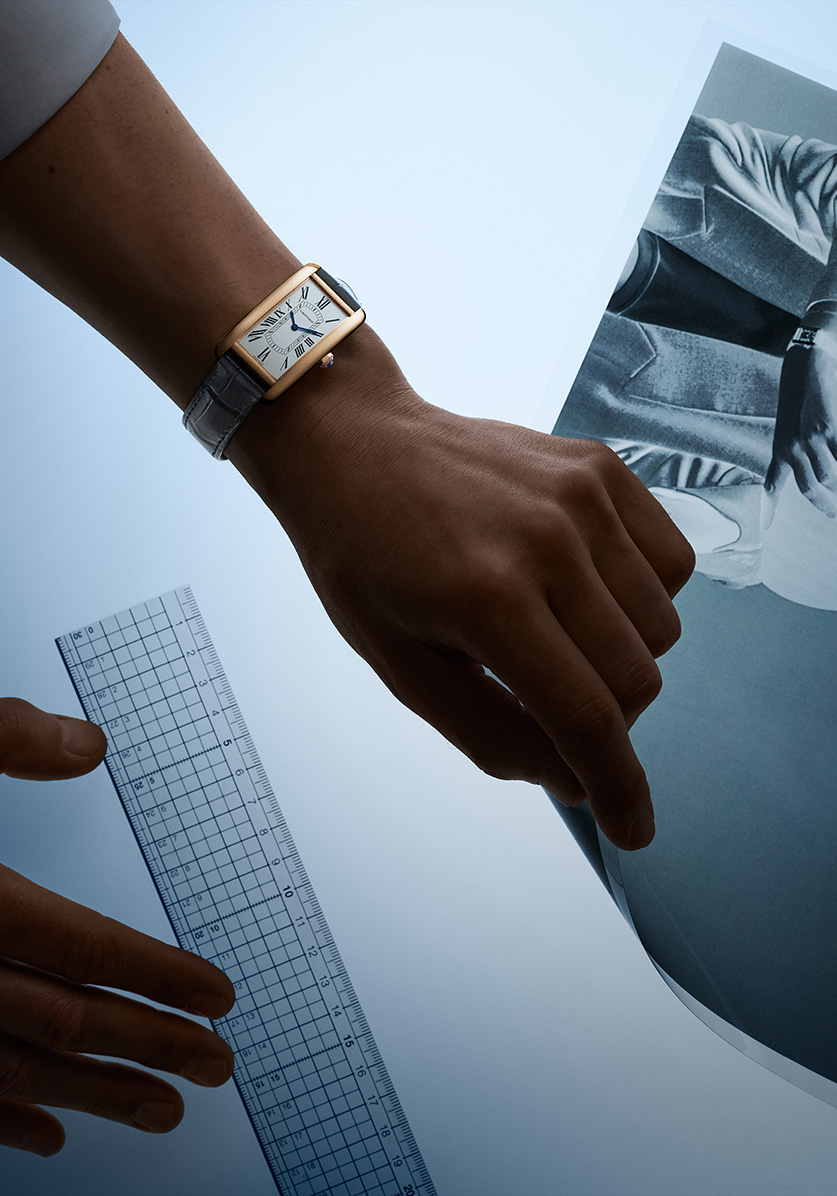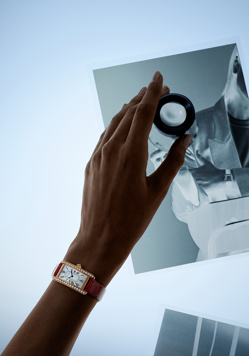 Launched in 1988, it unveiled a curved rectangular case, a more compact shape and more rounded brancards, which Cartier has now revolutionised with this brand-new version. A new approach, both aesthetic and ergonomic, which revitalises the ultra-profiled lines of the watch. The purity of its form is further reinforced by the style of the dial and the flawless integration of the brancards into the extension of the strap.