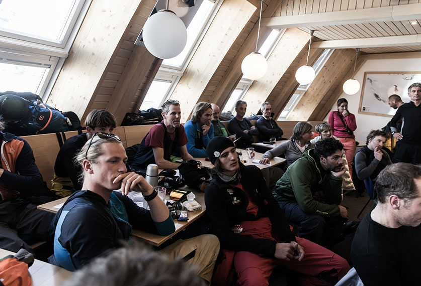 Highly experienced mountain guides, led by Claude-Alain Gailland, in charge of safety for the Verbier Xtreme for 20 years, supervised the operation with a cool composure.