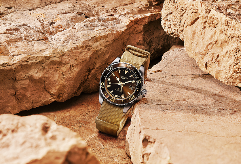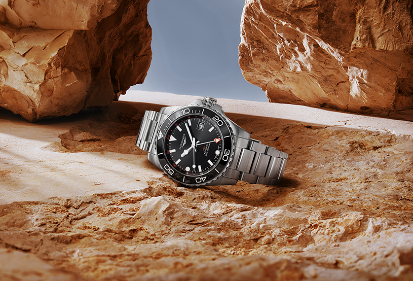 The HydroConquest GMT combines this function, useful to all travellers, with the underwater sports codes that personify it. It's aimed at modern-day adventurers who love discovery, and at demanding sportsmen and women, and will accompany them wherever they go.