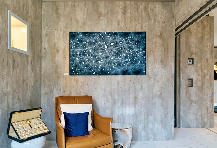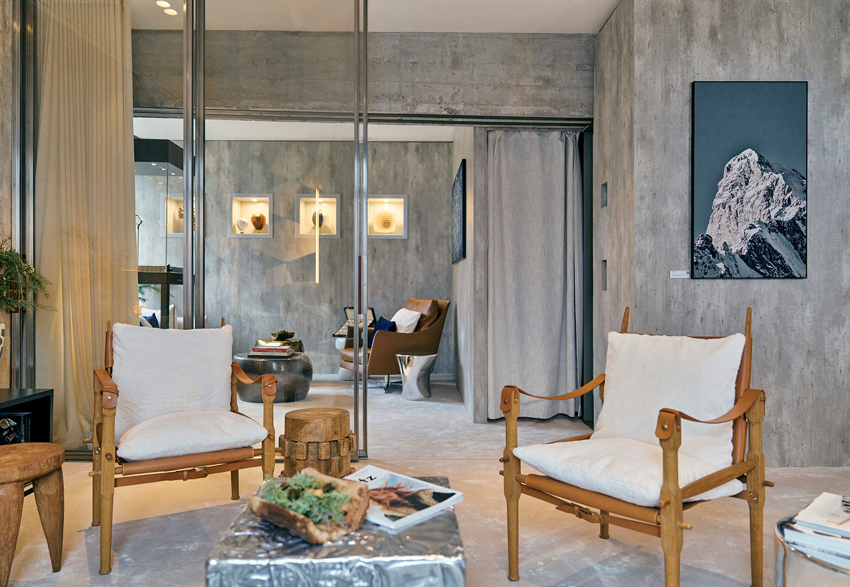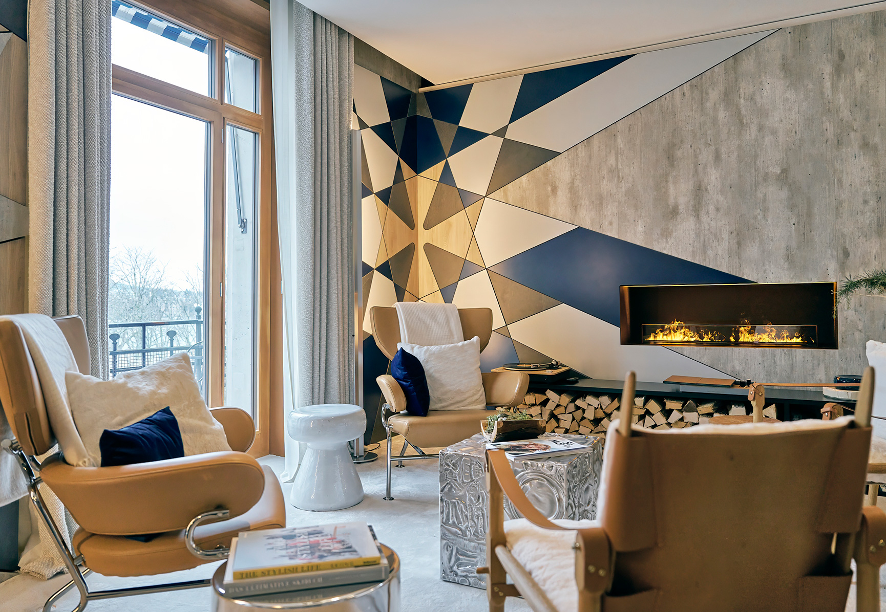 The Suite 1755 at La Réserve Eden au Lac Hotel in Zurich, merges typical Swiss Alps spirit and contemporary style. The spirit of the space reflects the interiors found in luxury residences in the Swiss mountains. The furnishings are refined and warm, with stone displays and wood furnishings, and unbleached walls enlivened in places by mosaic decorations suggesting the Maltese cross emblematic of Vacheron Constantin. Here, a fireplace breaks with the lakeside horizon of the large picture windows overlooking the mountains. Here, the VIP lounge offers soft comfort for discovering the Maison's Haute Horlogerie collections.