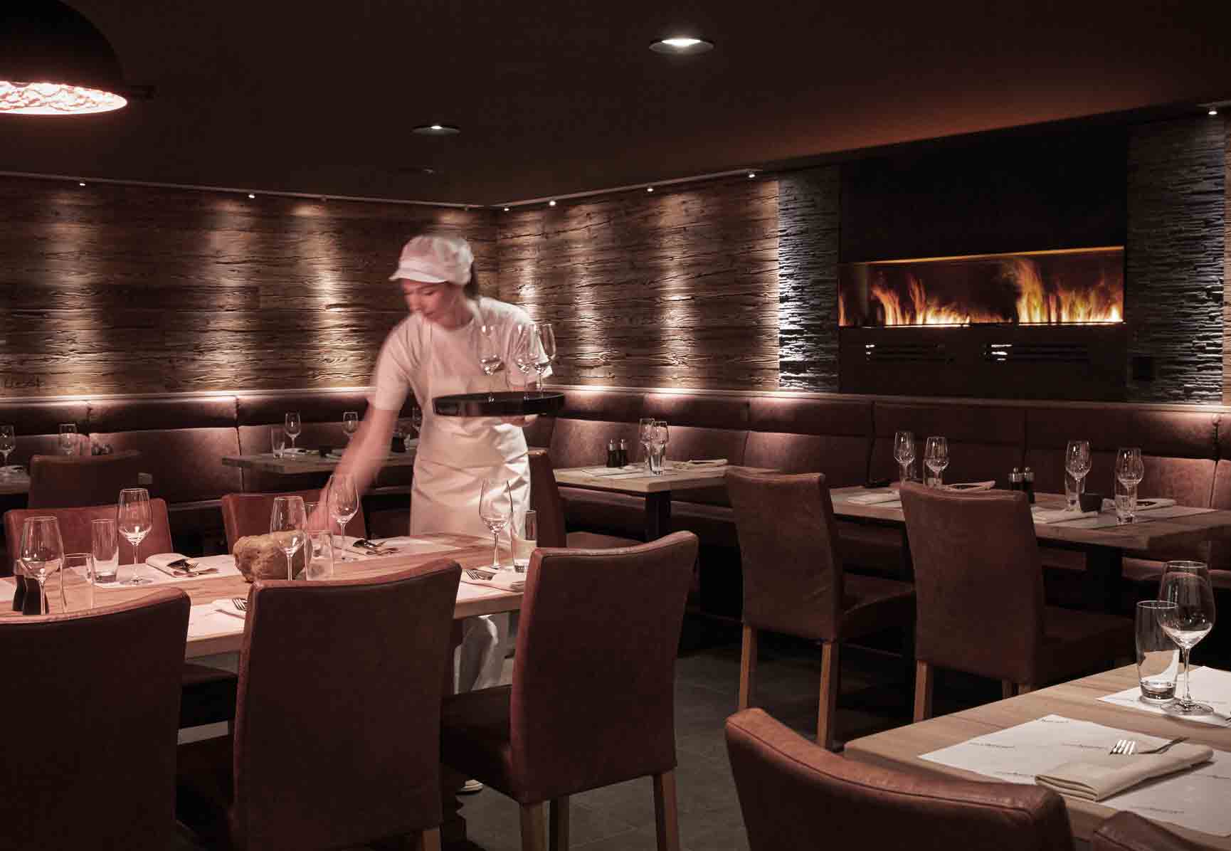 Everyone who dines here leaves with a smile on their face. Not because they’re having their photo taken (although they may well wish to capture the moment) but due to the quality of the cheeses, exclusively from Valais, served in the new Saycheese! restaurant, discreetly located in the basement of the Grand Hotel Zermatterhof. On the menu, naturally, are local dried meats, raclette and fondue dishes, perfect with an outstanding Fendant wine. The Zermatterhof, with champagne and cepes mushrooms (or winter truffles) is already close to legendary. And as for the setting, the contemporary adds spice to the traditional, with an open kitchen, old wood, stone and elements of mountain decor, alongside a thoroughly contemporary fireplace.