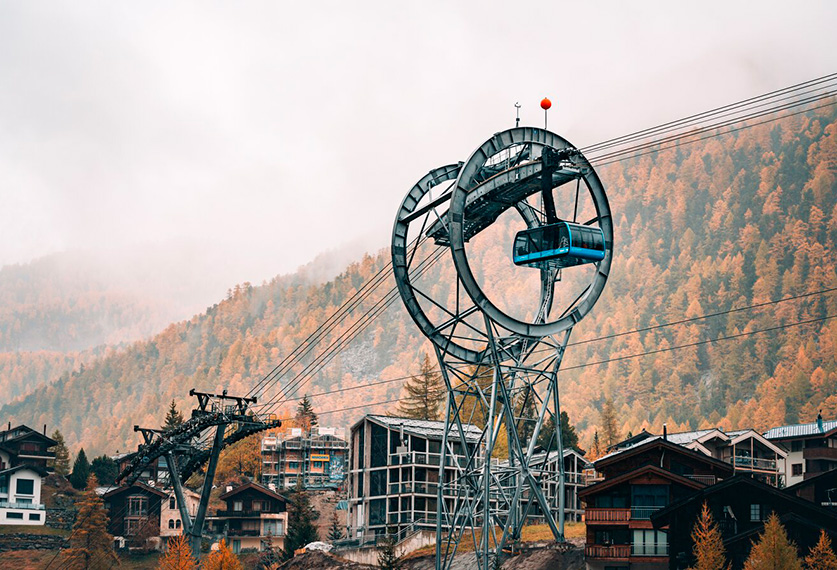 The new Zermatt-Furi cable car (which was dismounted in spring ‘22 for replacement) officially started operating this fall, just in time for the winter season and the first snow fall. The departure train station was renovated to meet Minergie-P low-energy-consumption guidelines, now contains ski lockers, and will soon welcome a baggage check-in counter for travellers wanting to journey to Italy via the Alpine Crossing. And the new panoramic cabins, which can transport up to 100 people, guarantee a magnificent view of the Matterhorn — which brave souls can also enjoy as a Rooftop Ride!