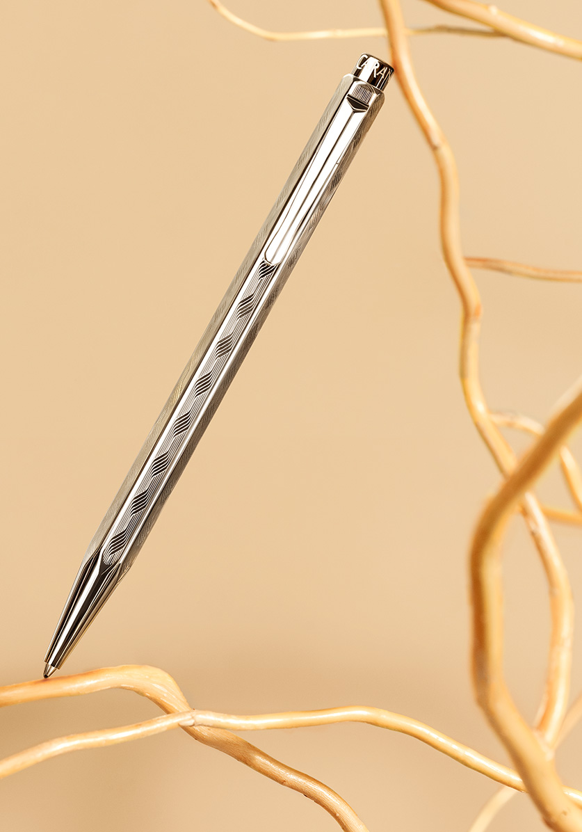 The hexagonal body of the Ecridor gives Caran d’Ache rein to unleash all its creativity, and the new special edition is enhanced by the basketry inspired design being set on a platinum finish and a diamond guillochage. The skilled hands of Caran d’Ache’s master engravers create the impressive design of the Ecridor Tressé: using structured curves to reveal a timeless decoration that boasts a unique play of sheen and light. The effect is enhanced by polishing the precious material, highlighting the splendor and detail of the latticework.