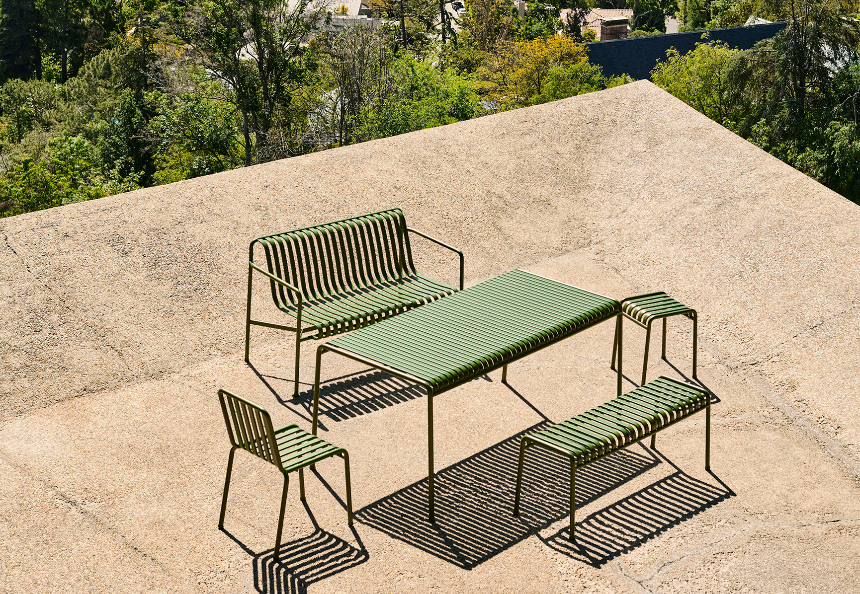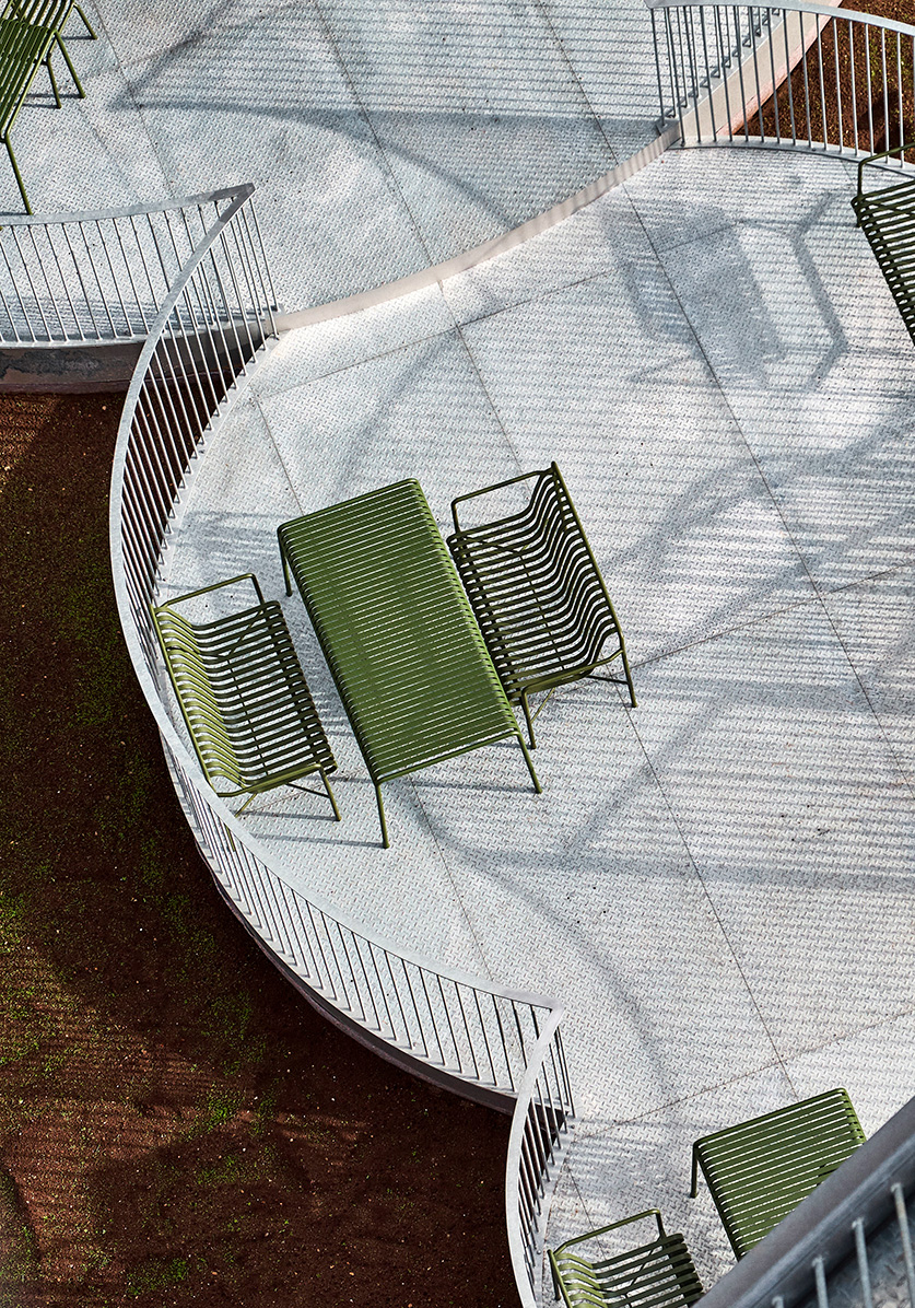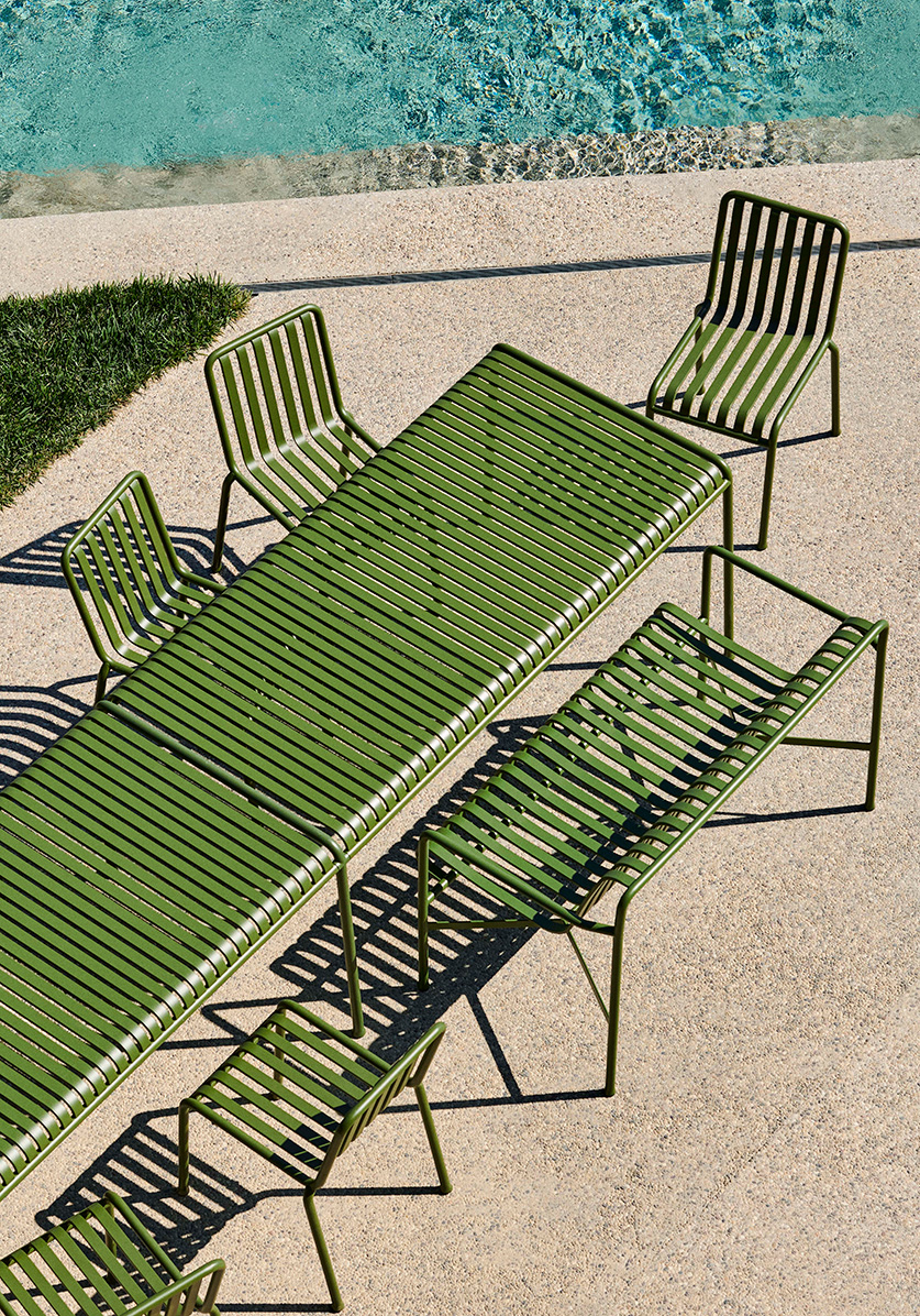 Designed to blend seamlessly into its surroundings, the Palissade Dining Bench by HAY, created by French brothers Ronan and Erwan Bouroullec, is a study in functional elegance. Its tubular steel frame and soft curves offer a balance of strength and visual lightness—making it equally at home in a garden, café terrace, or public square.