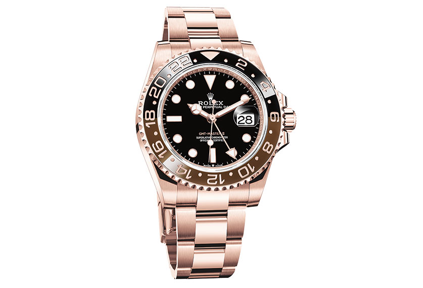 An iconic model that is immediately recognisable thanks to its large bidirectional rotatable bezel with 24-hour graduated insert, the GMT-Master II is a watch for globetrotters, and not without reason. In complementing its robust design, which combines both steel and exclusive Everose gold alloy, Rolex have ramped up its functionality: enhanced legibility of the second time zone and the date, an adjustable Oyster bracelet, and the COSC-certified precision of the new calibre 3285 self-winding mechanical movement, which gave rise to ten patents.