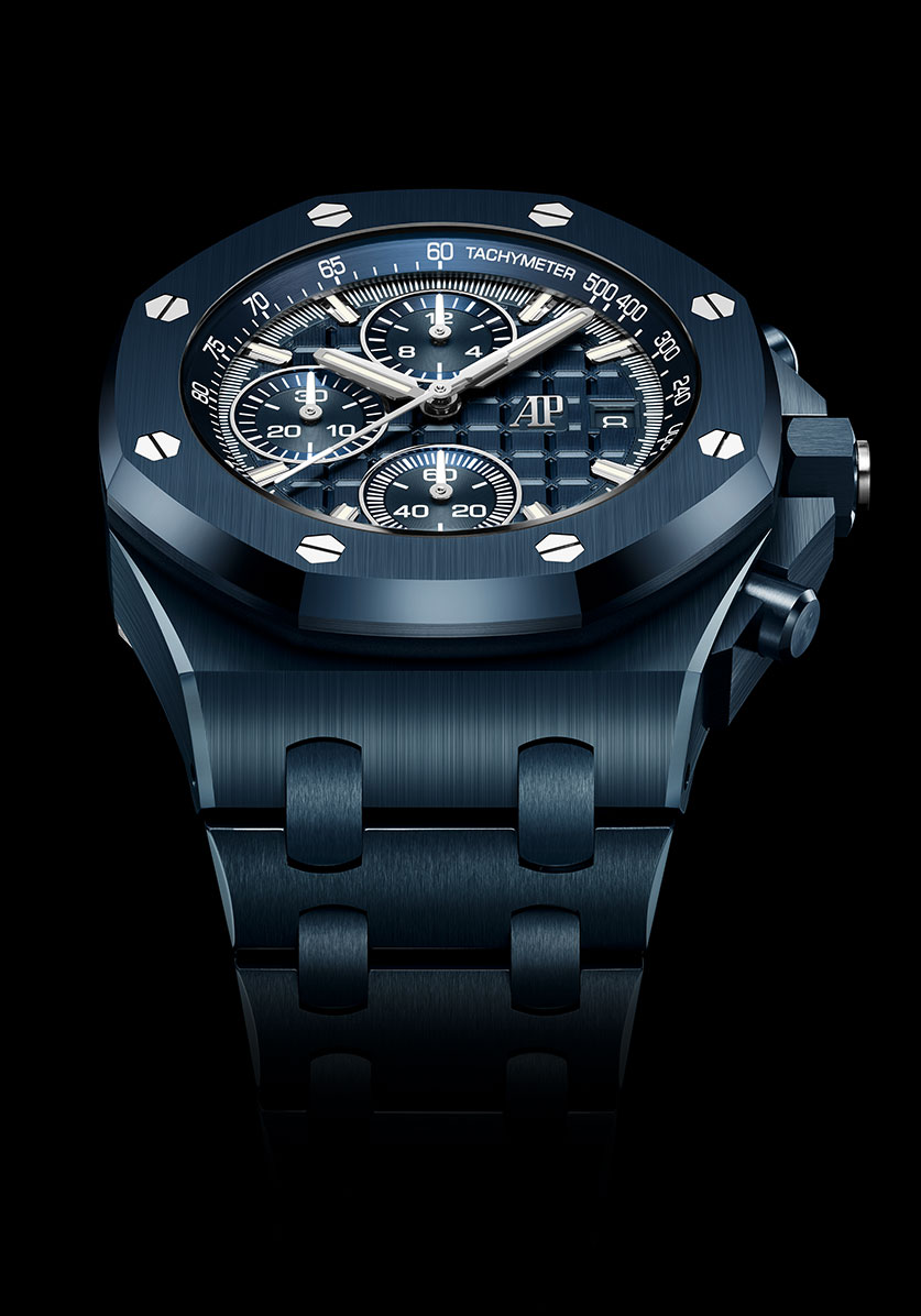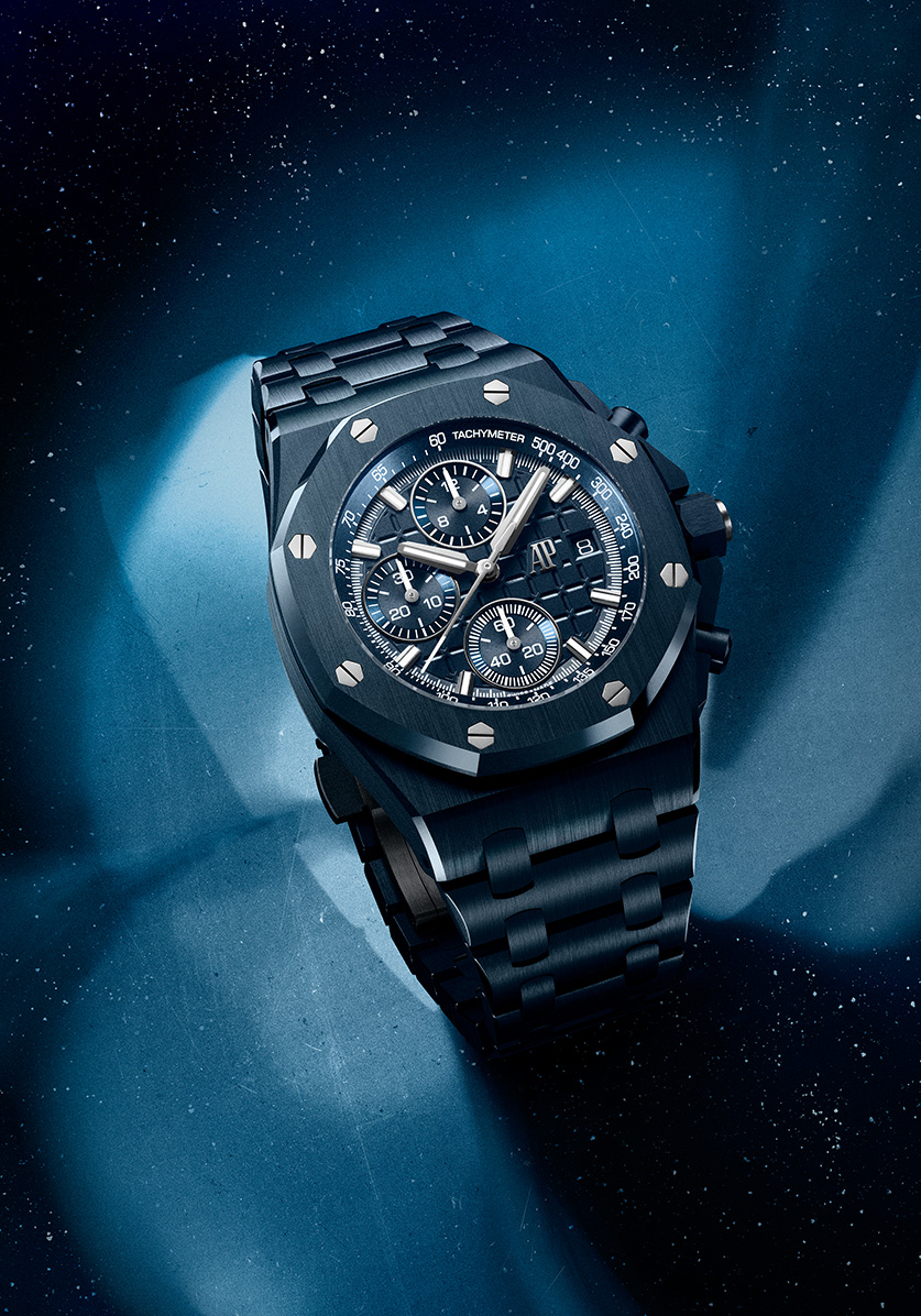 The artisans at the Maison AP have poetic souls. Inspired by the gorgeous night sky over the Vallée de Joux in 1972, they developed a deep, signature blue, which is now available in ceramic to dress the Royal Oak Offshore timepiece. The homogenous aesthetic of this captivating blue plays subtly with the grey gold hex screws, hands and luminescent indexes, creating an element of striking contrast.