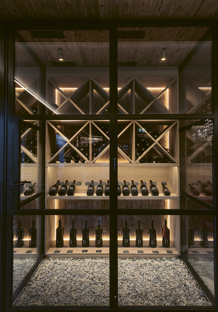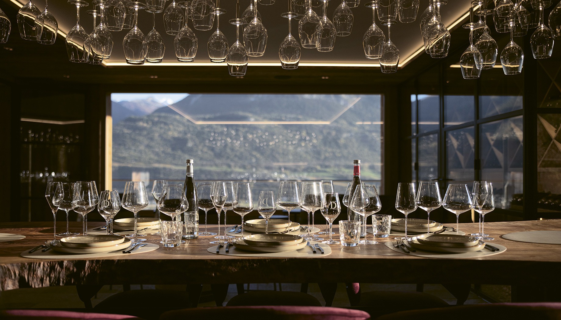 Entouré d’opulentes vignes et d’un timide olivier, le joli caveau de dégustation, tout de bois et de pierre, aménagé en 2022 à Loc, sur la commune de Crans-Montana, affirme d’emblée le positionnement haut de gamme. Dans cet espace apaisant, Histoire d’Enfer organise régulièrement des repas animés par des chefs renommés — à l’instar d’une proposition autour de la chasse du doublement étoilé Gilles Varone.