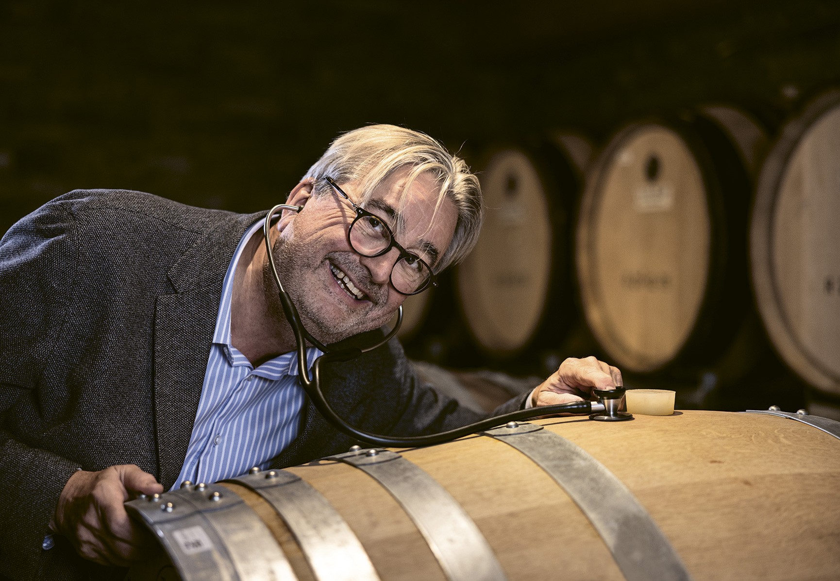 Deux rouges se distinguent : l’élégant Pinot Noir, représentant 25 % de la production, et le Cornalin, autochtone et robuste, au potentiel de garde important. Commercialisés aujourd’hui sur le millésime 2020, ces vins ont reposé six mois en cuve inox, passé douze mois en barriques de 600 litres et vieilli en bouteilles pour obtenir des tanins fondus. Patrick Regamey propose de déguster le millésime 2024, « compliqué pour les rouges », directement tiré du tonneau à la pipette par Alexandre Roduit, le chef de culture. Le vin Passion propose une belle bouche très fraîche, au final d’orange amère. Le Calcaire frappe par sa minéralité et son côté safrané, alors que Calcaire absolu, élevé en bois neuf, transporte vers des effluves de balsamique et de sous-bois. Un jour cotonneux se prêtera aux douces flammes de l’Enfer blanc, issu du Pinot Gris et du Riesling, aux effluves de citron. Et le Cornalin ? Verre en bouche, Patrick Regamey s’exclame : « voici un vin magique ».