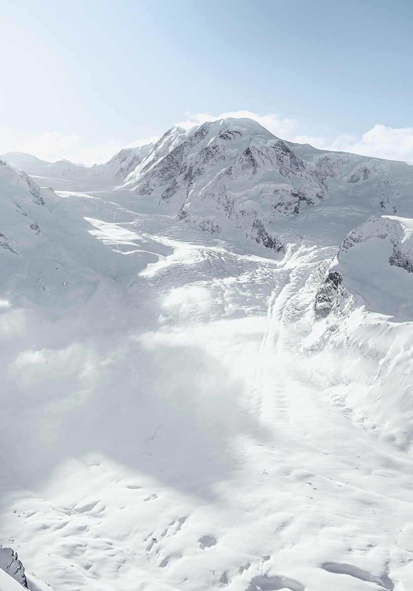 Il y a d’abord le village, bien sûr, son authenticité, sa sérénité, l’absence de voitures, la qualité de ses infrastructures. Il y a l’iconique Cervin, qui règne en maître sur ce coin de vallée. Et toutes ces montagnes qui l’accompagnent, dessinant la plus forte concentration de hauts sommets des Alpes : pas moins de trente-huit 4’000 m dans le viseur.