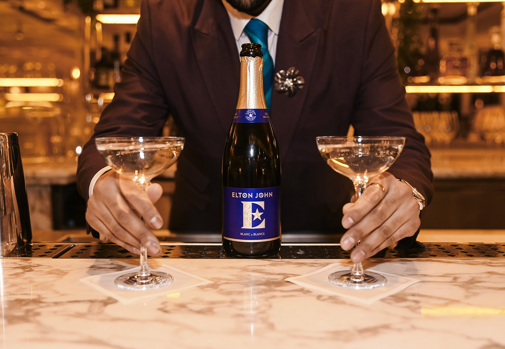 « J’ai autrefois tenu un bar à champagne à Las Vegas appelé Fizz, un lieu rempli de rires, de musique, de joie de vivre et de ces moments inoubliables que l’on partage autour d’un verre de quelque chose de vraiment spécial. Le champagne a cette capacité magique à sublimer chaque occasion. Lorsque Elton et moi avons parlé de notre plaisir croissant pour les alternatives sans alcool, nous voulions capturer précisément ce sentiment de joie et de célébration sans aucun compromis. Notre Elton John Zero Blanc de Blancs sans alcool y parvient parfaitement. »